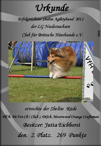 Best veteran dog in show and 2nd best agility dog in Club og British  sheepdog,Niedersachsen 2012