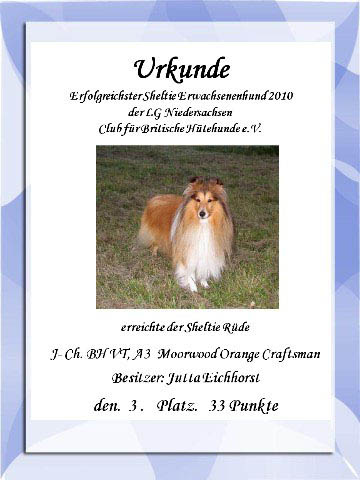 The honnor of the best show- dogs and the best agility-dogs of 2010 of our countrygroup Club British Sheepdog.